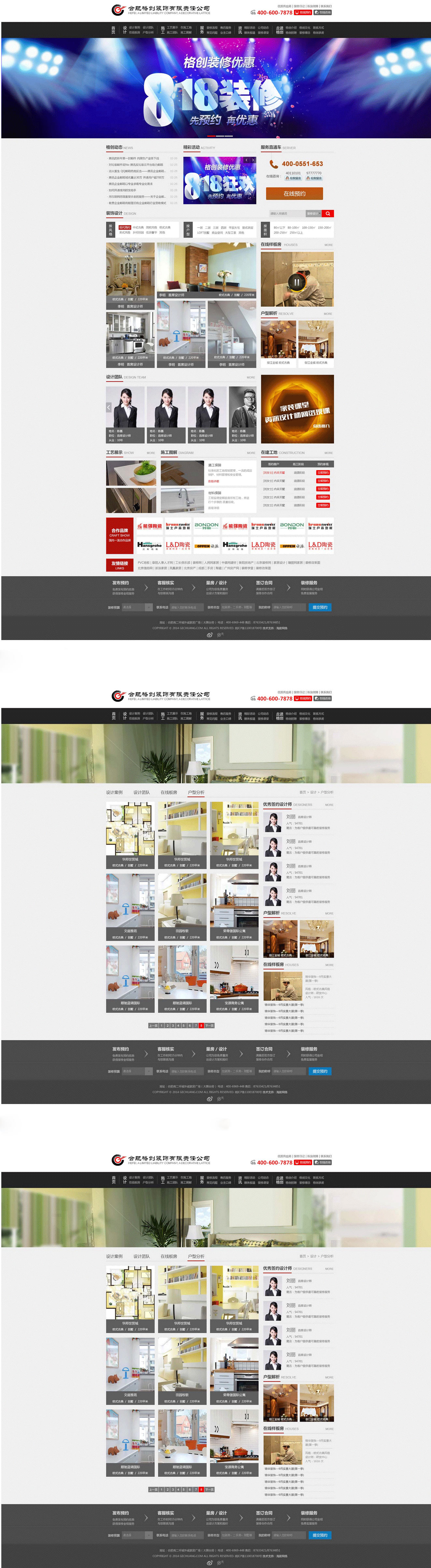 合肥格创装饰有限责任公司是一家集室内设计、预算、施工、材料于一体的专业化装饰公司。公司从事装饰装修行业多年,有着创新的设计、合理的报价,还有一批独立的专业化的施工队伍,确保施工绿色环保,安全文明。合肥格创装饰有限责任公司是海拔网络的老朋友介绍的,这位老朋友在听说格创装饰需要重新进行网站设计的时候,就立马将我们推荐给了客户。虽然是经过朋友介绍,但是客户对于合作伙伴的选择也是非常的谨慎。除了我们之外,客户也找了其他几家网络公司。在与客户进行沟通之后,我们为客户做了网站的规划方案、向客户展示我们做过的类似的网站案例,并且非常忠恳的提出我们关于网站建设的一些建议。