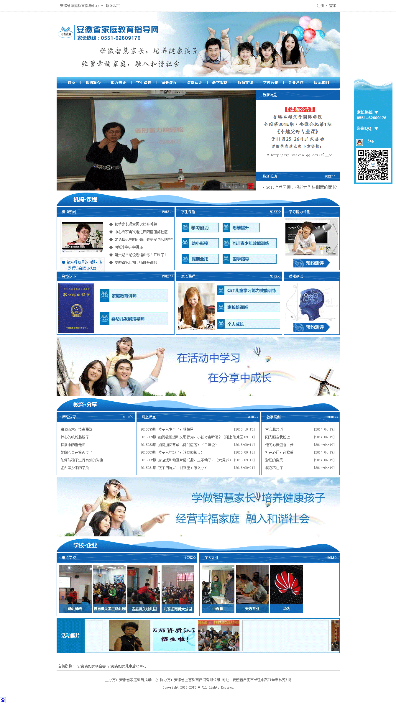 安徽省家庭教育指导中心位于合肥市长江中路57号5楼,是省妇联的直属机构,中心自成立以来,一直致力于家庭教育的研发和培训,并紧紧围绕“学做智慧家长,培养健康孩子,经营幸福家庭,融入和谐社会”开展工作,自2005年以来,已成功举办公益讲座800多场,直接和间接受众达1,000,000人以上,直接培训家长学员9,000余人次,直接训练3-18岁青少年9,000多人,总有效率达100%,实效率90%以上。是集家庭教育咨询、培训、实践为一体的综合性家庭教育工作机构,同时为来到省家庭教育指导中心这个平台上的家庭提供系统的家庭教育解决方案,让家长更智慧,让孩子更健康,让家庭更幸福,让社会更和谐。