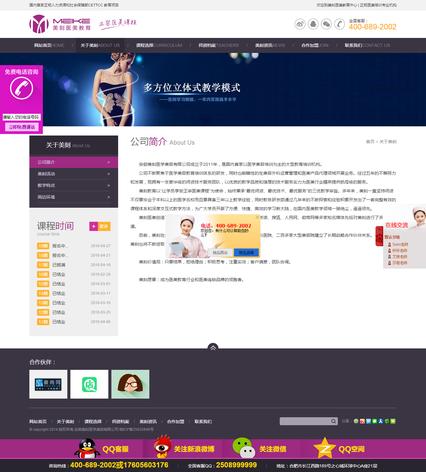 安徽美刻医学美容有限公司成立于2011年,是国内首家以医学美容培训为主的大型教育培训机构。