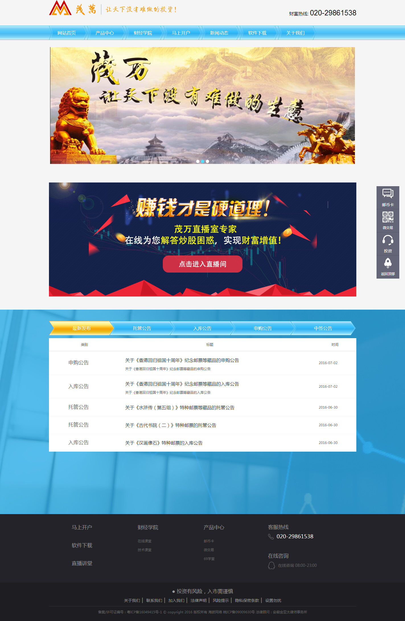广州茂万商务服务有限公司(下称广州茂万)成立于2016年5月。茂万的核心团队十分豪华,其中包扩招商银行海外投资策划总监、著名基金经理、资深金融交易员和中信银行投行部成员。因为一个相同的梦想他们从五湖四海来到广州,他们希望通过他们的努力让天下没有难做的投资。