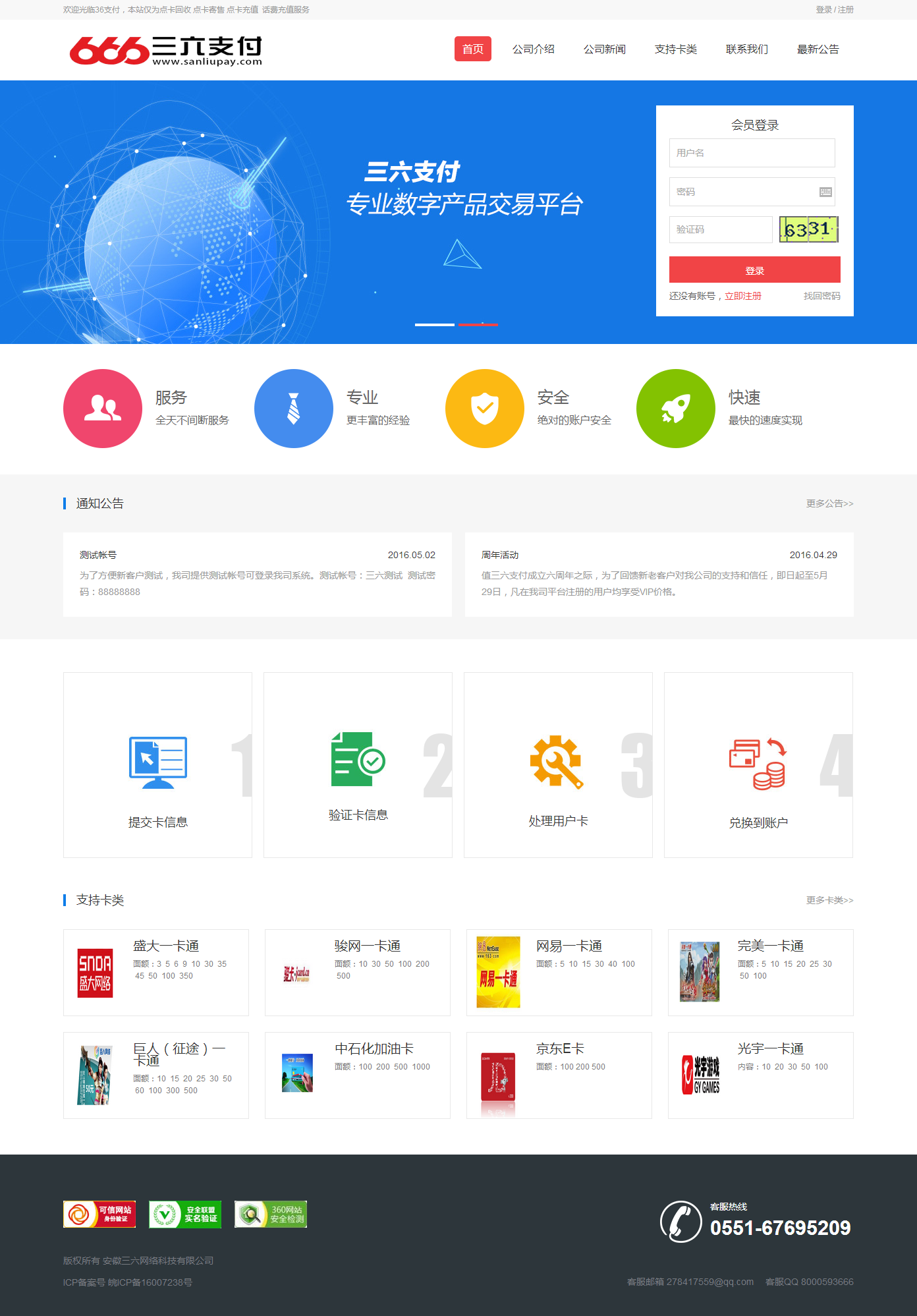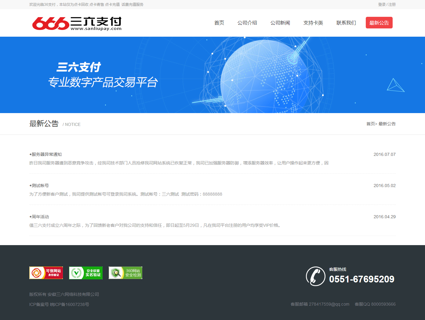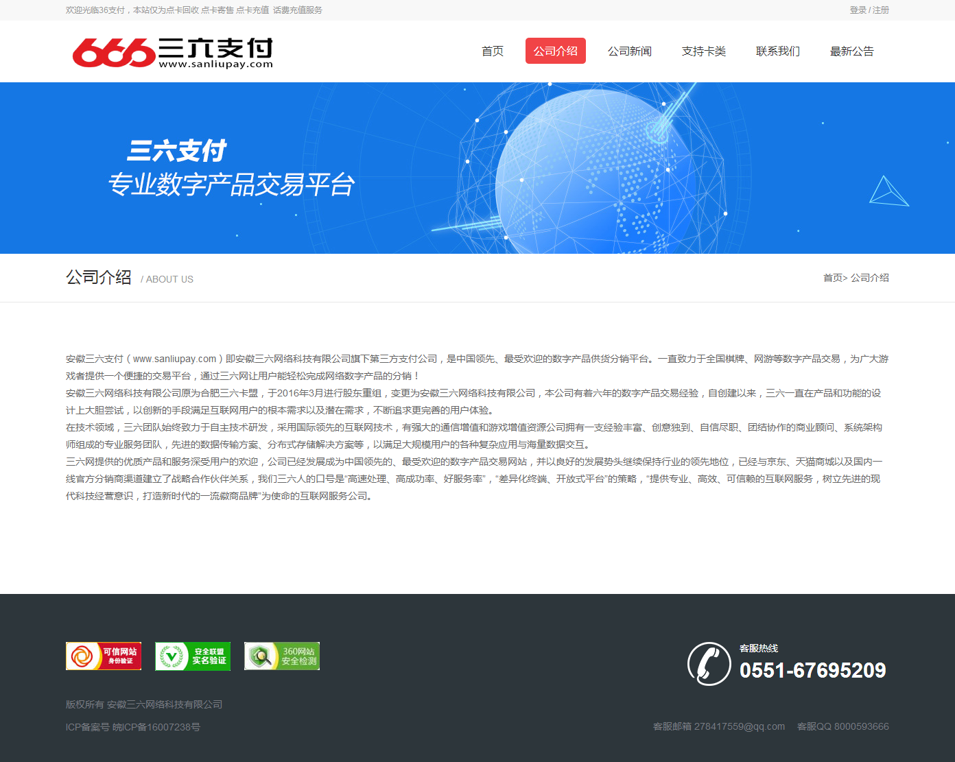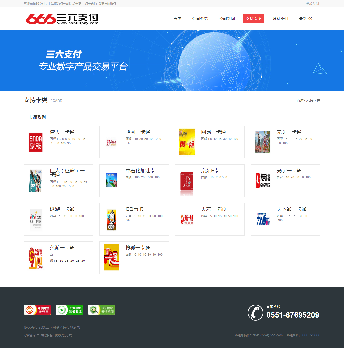 安徽三六支付(www.sanliupay.com)即安徽三六网络科技有限公司旗下第三方支付公司,是中国领先、最受欢迎的数字产品供货分销平台。一直致力于全国棋牌、网游等数字产品交易,为广大游戏者提供一个便捷的交易平台,通过三六网让用户能轻松完成网络数字产品的分销!